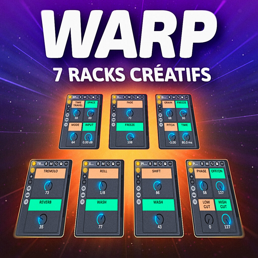 WARP 7 Racks d’effet pour faire tes transition aussi vite que la lumière 7€ MIX 10 Racks d’effet ultra simples pour mixer plus vite et plus fort 5€ STUDIO 360° Le Template Notion pour piloter ton projet musical 5€ DRUM RACK CONTROL Un Projet Ableton pour reprendre le contrôle sur tes Drums GRATUIT MIX MACHINE Un Rack d’effet pour t’accompagner dans tes mix GRATUIT ANALYSE MUSICALE Un Template Notion pour déchiffrer tes morceaux favoris GRATUIT DIMENSION Deux Racks Ableton pour faire passer ton mix en 3 Dimensions GRATUIT